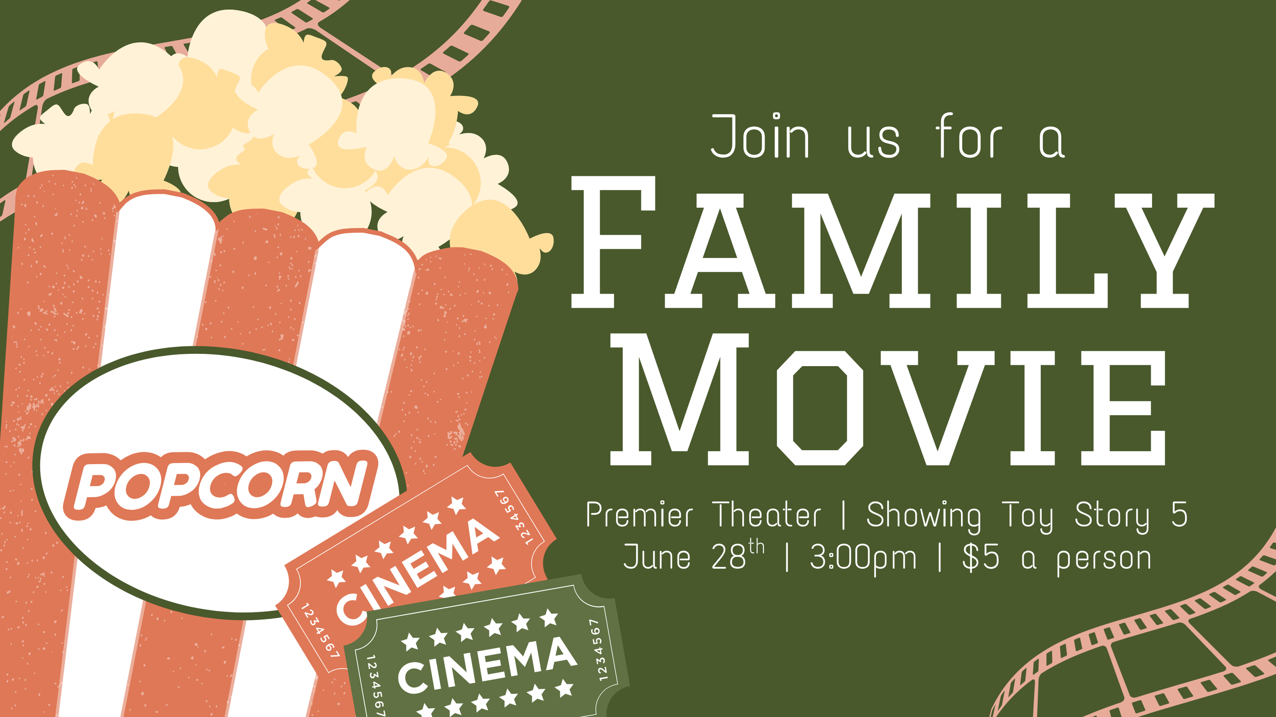 Join us for a fun family movie afternoon at Premier Cinemas! We’re renting out a theater to watch Toy Story 5 together. Registration is required.